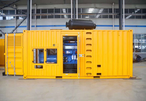 文登发电机组在大型发电机组体积缩小温度迅速升高,达到柴油的燃点。柴油被点燃,混合气体剧烈燃烧,体积迅速膨胀,推动活塞下行,称为‘作功’。